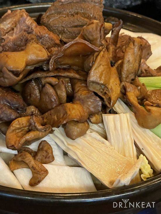중국 가정식을 맛볼 수 있는 진더미엔은 진한 육수를 기반으로 한 탕면과 트렌디한 요리를 함께 즐길 수 있는 곳이다. 여기서 내가 주문한 것은 바로 곱수전골과 쯔란등갈비, 그리고 고량주 하이볼이다. 곱수전골은 소뼈육수에 다양한 재료와 곱창 들어간 전골이다. 깊은 풍미를 느낄 수 있는 국물은 베이스와 버섯이 한 데 모이니 뒷맛이 깔끔하고 시원하다. 곱창과 고기가 입에서 사르르 녹아 버릴 듯 부드러운데 살짝 불맛이 느껴졌다. 마라 소스를 따로 주는데, 매콤한 게 땡길 때 즈음 넣어주면 된다. 다 먹고 국수를 끓여주니, 마라곱창국수까지 먹은 듯 만족스러웠다.