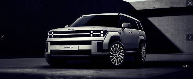 싼타페 5세대는 높은 후드와 각진 차체, 과거 오프로더 이미지를 떠올리게 하는 디자인으로 강한 인상을 남겼다.