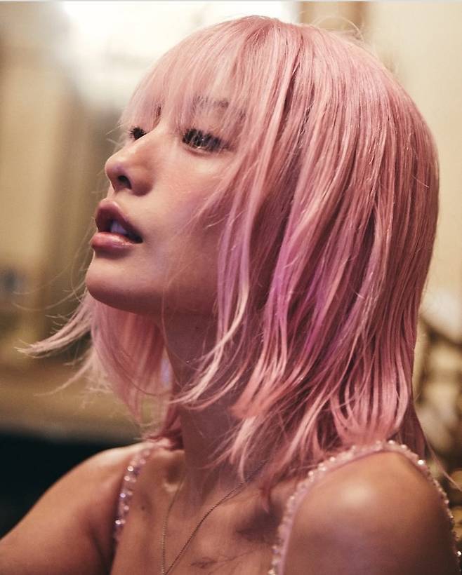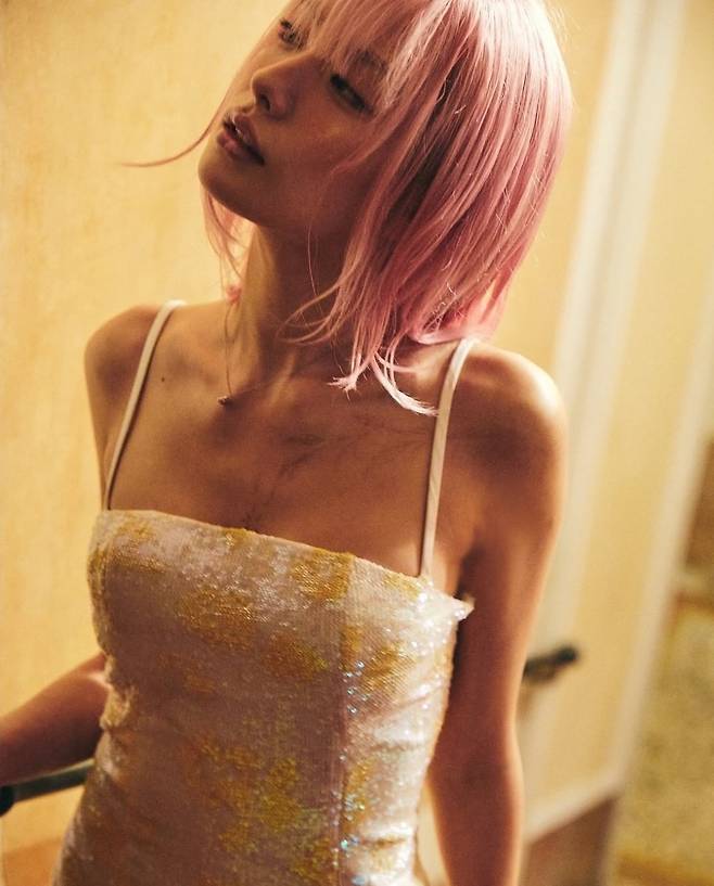 핑크 헤어와 그녀만의 당당한 포즈는 마치 동화 속 공주를 떠올리게 하며, 동시에 섹시하면서도 우아한 분위기를 자아냈습니다.