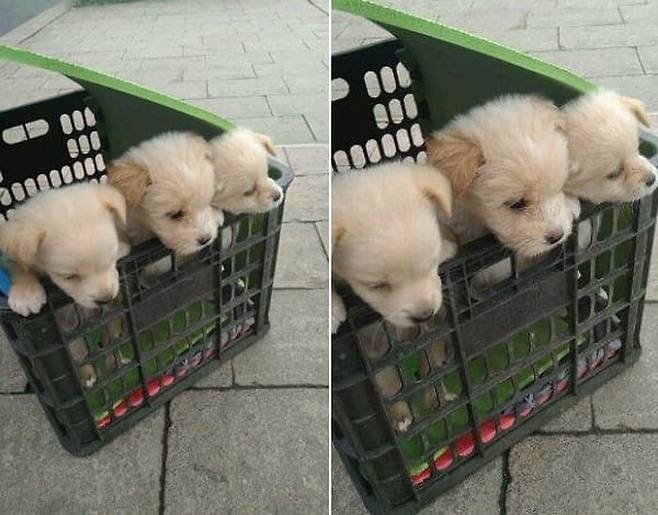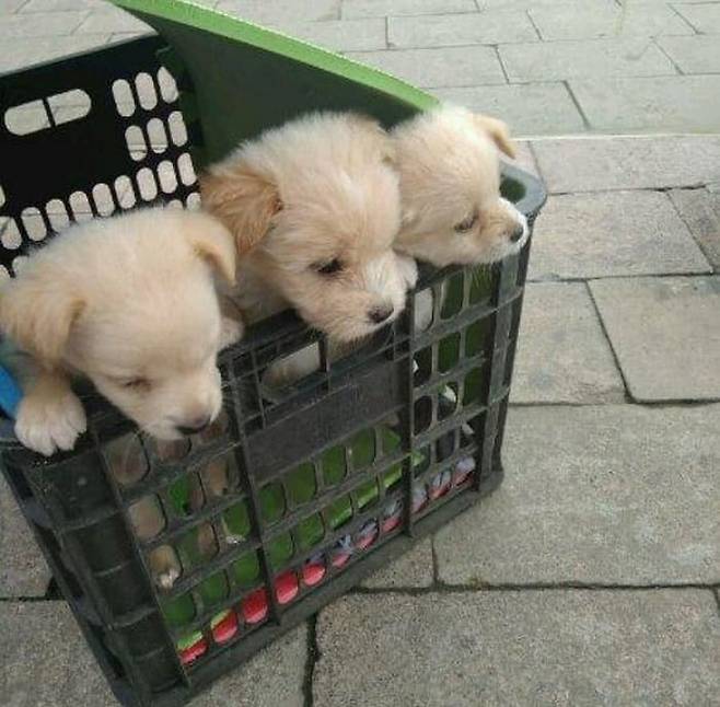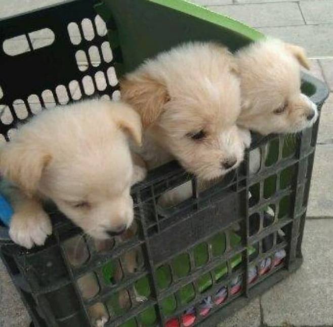 가까이 가보니 그 안에는 눈을 막 뜬 것 같은 작고 사랑스러운 아기 강아지 세 마리가 꼬물거리고 있는 것이 아니겠습니까.
