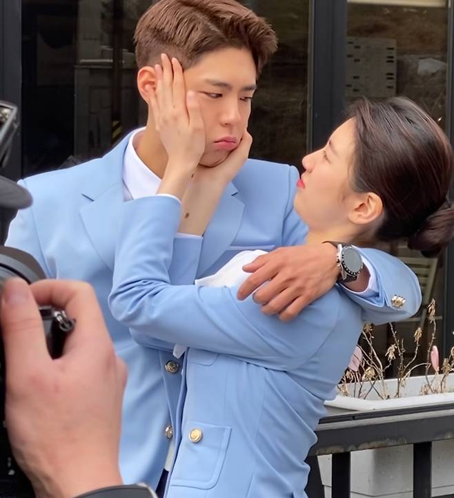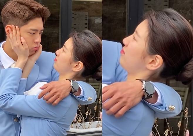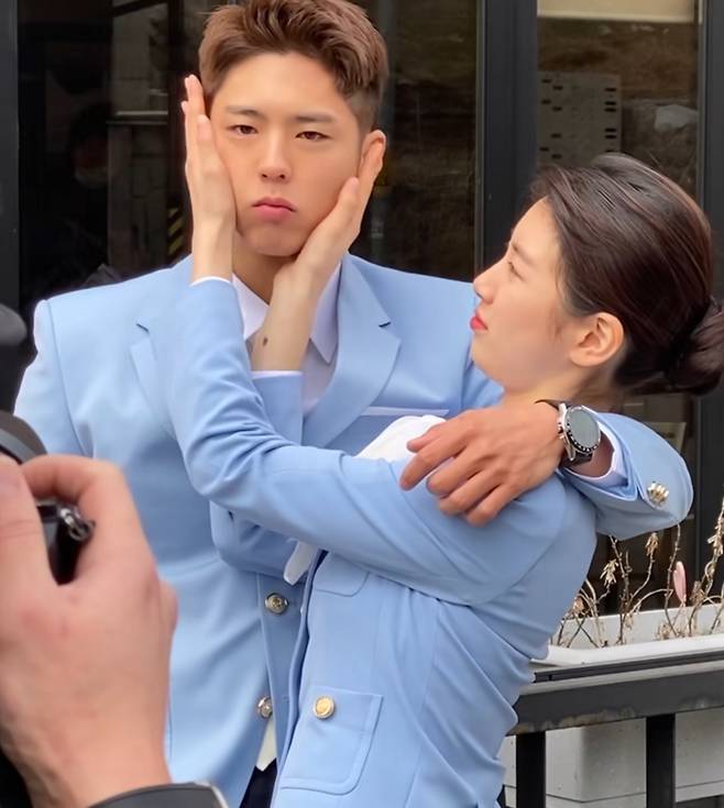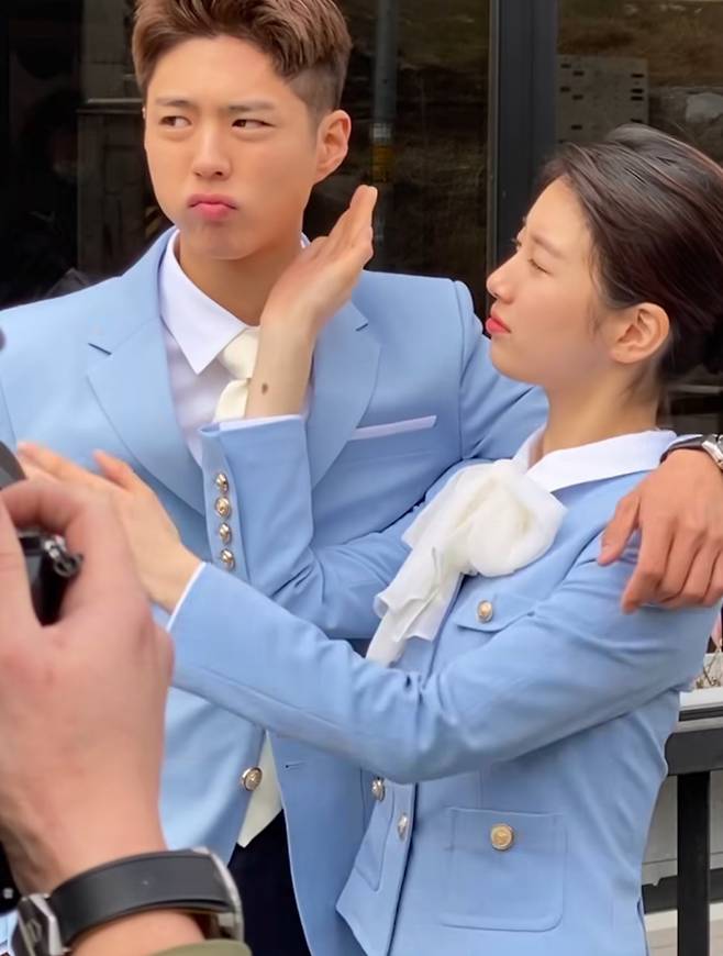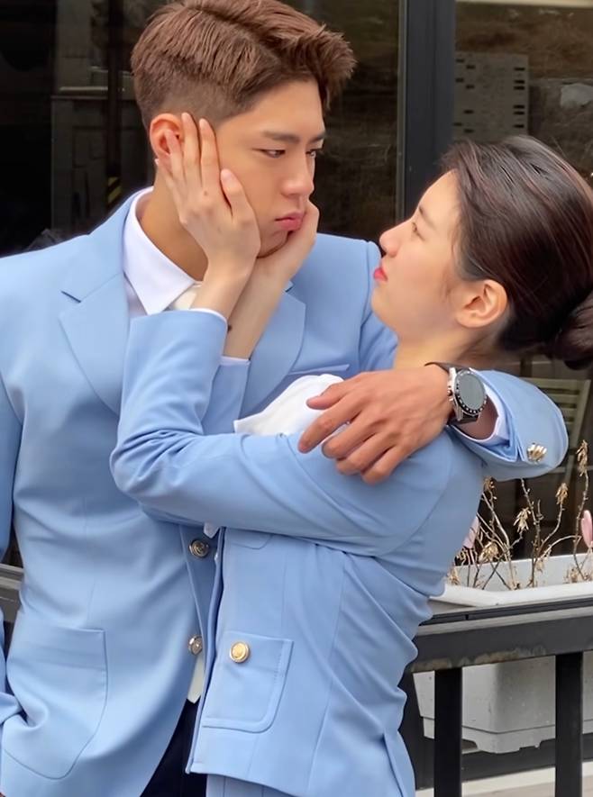 가수 겸 배우 수지가 박보검과 함께 찍은 투샷을 공개했습니다. 사진 속 수지의 승무원 유니폼과 헤어스타일이 이목을 끌었습니다.