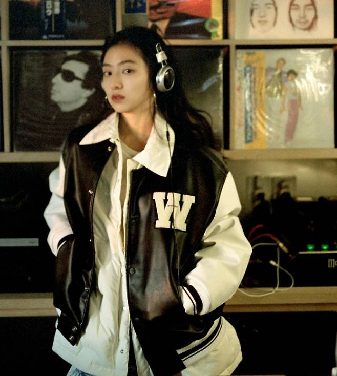오버핏 바시티 자켓에 헤드셋을 매치하여 트렌디한 MZ룩을 완벽하게 소화했습니다. 자칫 과해 보일 수 있는 난해한 팬츠도 그녀만의 스타일로 소화하는 모습이 인상적입니다. 역시 패션의 완성은 얼굴일까요? 😉