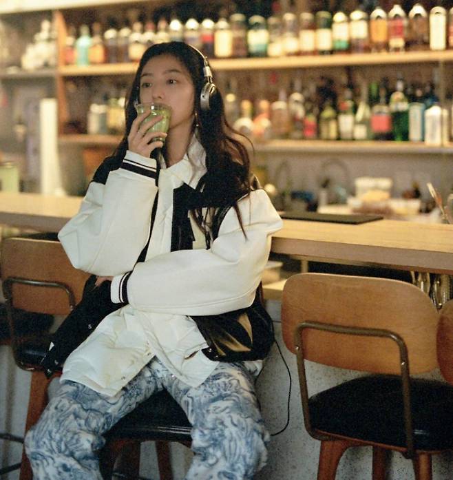 오버핏 바시티 자켓에 헤드셋을 매치하여 트렌디한 MZ룩을 완벽하게 소화했습니다. 자칫 과해 보일 수 있는 난해한 팬츠도 그녀만의 스타일로 소화하는 모습이 인상적입니다. 역시 패션의 완성은 얼굴일까요? 😉