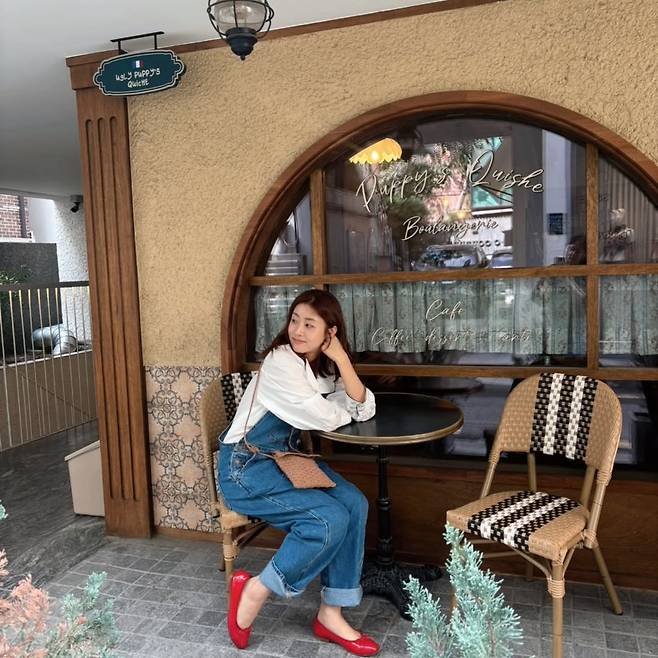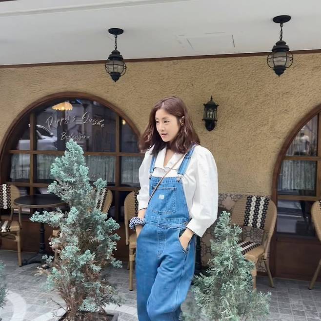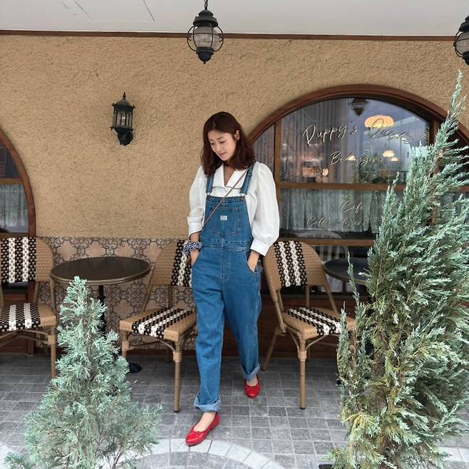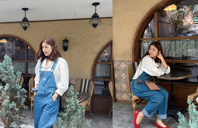 이날 강소라는 퍼프 소매 화이트 블라우스에 와이드 데님 오버롤을 매치해, 편안하면서도 센스 넘치는 데일리룩을 완성했다.