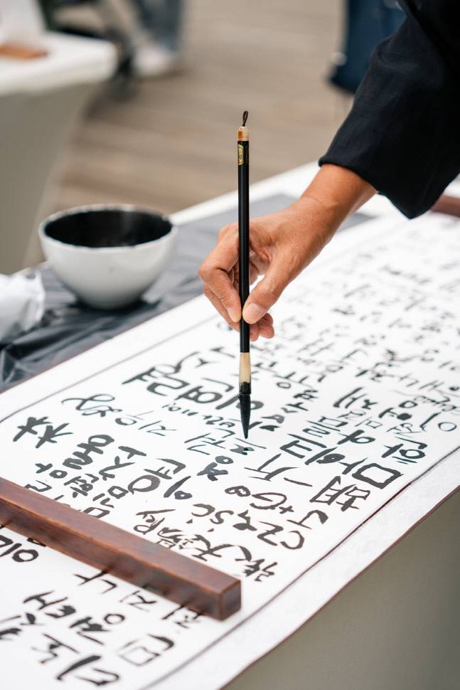 기어코 일회성 이벤트로 끝나지 않았다. 수많은 관심 속에 지난달 LA에서 400여 명이 몰린 가운데 휘호장까지 열렸다. 특히 재미교포 2세가 자기 한글 이름을 붓으로 쓰며 의미를 되새겼다. 이 전 회장은 “가슴이 참 벅차더라. 우리 교포들이 한글 우수성과 매력을 느끼면서 자랑스러워했다. 주변 외국인도 한글에 관심 두고 붓을 잡는 데 기분이 묘했다. 이런 게 또 다른 국위선양인가 싶더라”고 웃었다.