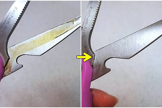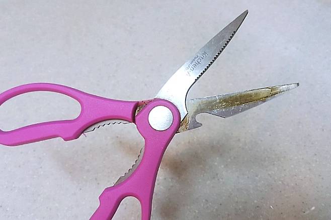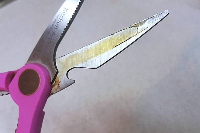 주방에서 자주 사용하는 가위인데 어느 날 보니 녹이 슬었더라고요. 녹이 슬면 보기에도 별로 안 좋은데요.