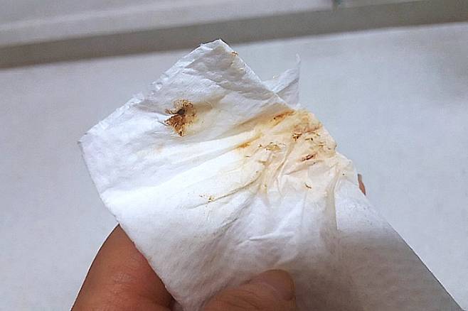 그 다음 화장지로 닦아내면 녹이 잘 지워진답니다. 주방세제로 잘 세척한 뒤 물로 여러 번 헹궈주시면 끝!