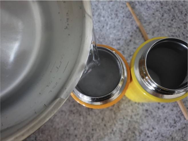뜨거운 물을 가득 붓고 한참 방치해 두세요