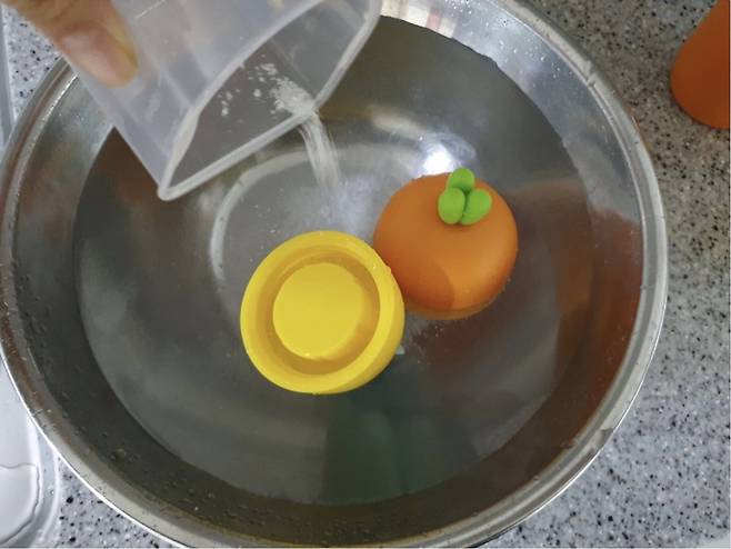 뚜껑은 따뜻한 물에 구연산이나 베이킹소다를 풀고 한참 담가두었다가 세제로 닦아주세요