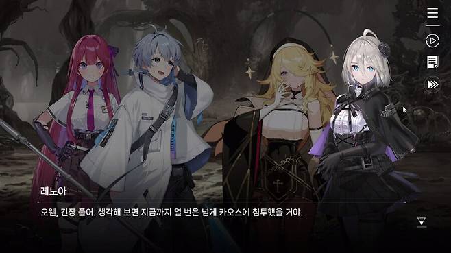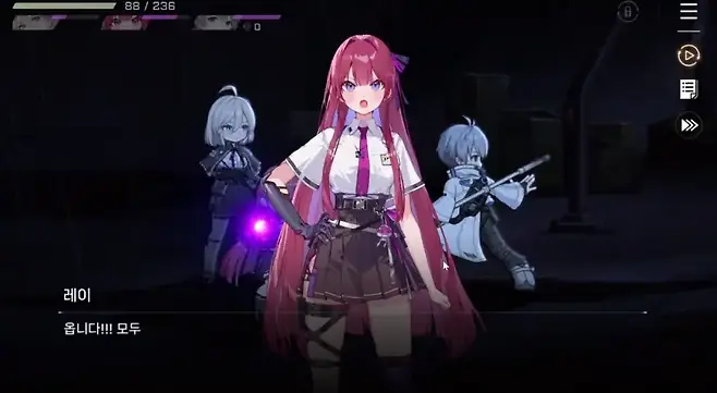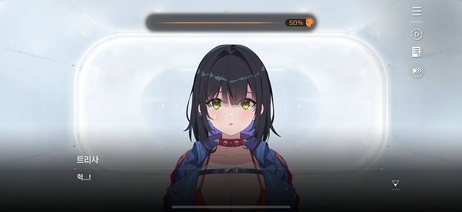 물론 스토리를 그냥 넘어가고 게임플레이에만 집중해서 하자면 나쁠 건 없겠지만, 그 길로 가는 것마저도 막아둔 게 또 하나의 치명적인 실수입니다. 3배속만 지원하고 스킵은 없거든요. 엄밀히 말하면 스킵이 없는 건 아닌데, 처음 스토리를 볼 때 스킵이 비활성화 되어있으니 없는 거나 다름없죠. 아마도 멀티엔딩인 '트라우마 코드'를 감안해서 그렇게 설계한 것 같은데, 정작 트라우마 코드는 선택지로 바로 가는 '이어가기'가 진입하기 전에 미리 있어서 애매해졌죠.