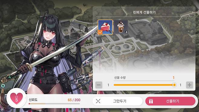 '카제나'가 그렇다고 서브컬쳐 게임의 구색을 안 갖춘 건 아닙니다. 외출, 선물하기로 신뢰도 올리기 등 기본적인 사양은 갖췄으니까요. 그렇지만 대부분이 주인공이 부재해도 대체되지 않을까? 그런 의심이 들어버린 순간 의미를 잃어버린다는 게 치명적입니다.