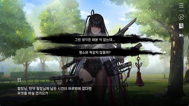 그러나 '카제나'에서 유저의 분신, '함장'은 그 기대에서 벗어나버렸습니다. 대신 그 스포트라이트를 또다른 캐릭터 '오웬'으로 쏠려버렸죠. 그러면서 주인공에 몰입해서 보는 그간의 독법이 깨져버립니다. 심지어 주인공에 대한 존중도 없죠. 형식상 함장이라고 불러주고 1장 말미에 레노아가 좀 걱정해주는 듯한 무브를 보여주긴 하는데, 4장에서 오웬이 고서에 조종당하는 바람에 그걸 막다가 배를 찔린 상황에서도 오웬을 더 걱정해주는 그런 식으로 끝이 나버립니다.