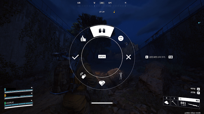 10. 협상도 생존 기술이다 이 게임에서는 감정 표현을 활용하여 다른 플레이어와 소통하고, 심지어 팀을 맺을 수 있다(!), 개발사에서도 이를 고려했는지 감정 표현을 열어보면 "쏘지 마"와 "같이 팀 할래?"가 함께 들어있다. 시작은 솔로이지만, 협상을 잘해서 듀오가 되거나, 트리오에서 말이 잘 통해 스쿼드 이상이 될 수도 있는 것이다. 또 탈출지 근처에서 쓰러졌을 때 자신을 죽이러 오는 적에게 연민의 감정을 불러일으켜 함께 탈출할 수도 있다. 물론 '적과의 동침'은 언제나 뒷통수를 조심해야 하는 점을 명심하자.