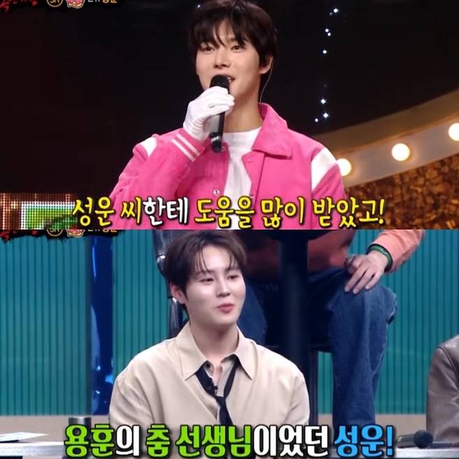 이후 용훈은 복면가왕에 출연하여 멋진 무대를 선보였고, 판정단으로 참여한 하성운에게 감사의 인사를 전했죠. 복면을 쓴 채 하성운과 원위 용훈, 두 사람은 함께 에너제틱 무대를 보여주며 훈훈한 분위기를 연출했습니다. 군대 덕분에 이런 멋진 콜라보도 보게 되다니! 😍