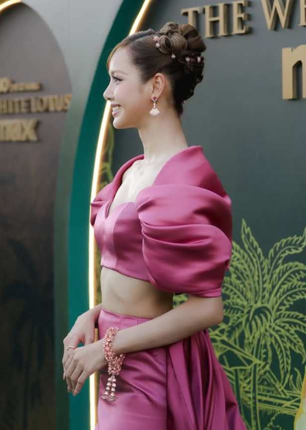 상의는 크롭 한 기장으로 디자인되어 리사 님의 탄탄한 복근 라인을 드러냈어요. 화려한 핑크 셋업과 함께 건강미를 강조한 포인트로, 스타일리시하면서도 자신감 있는 이미지를 연출했답니다.