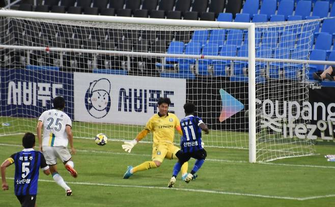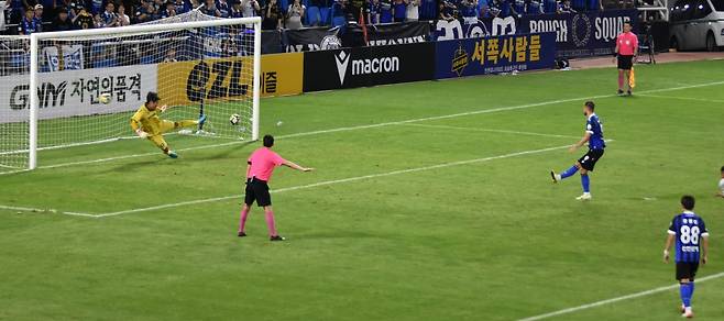 | ▲ 후반 추가 시간 2분 19초, 인천 유나이티드 무고사의 페널티킥 쐐기골이 들어가는 순간 |