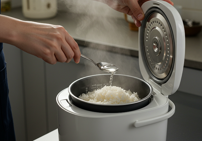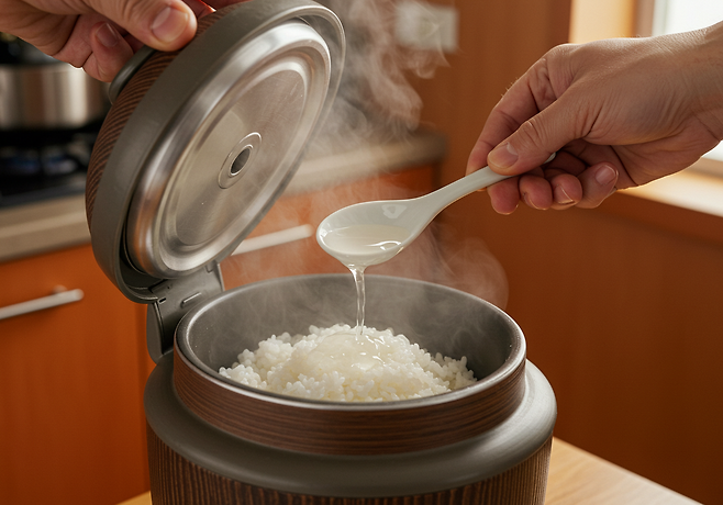 - 1인분 기준: 쌀을 넣은 후 식초 1큰술과 참기름 또는 올리브유 1큰술을 첨가합니다. 식초의 신맛은 조리 과정에서 대부분 사라지며, 기름은 밥의 윤기와 촉촉함을 더합니다