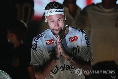 네이마르는 1일(한국시간) 브라질 상파울루주 산투스의 산투스FC 홈구장 우르바누 카우데리아 경기장에서 입단식을 치렀다.