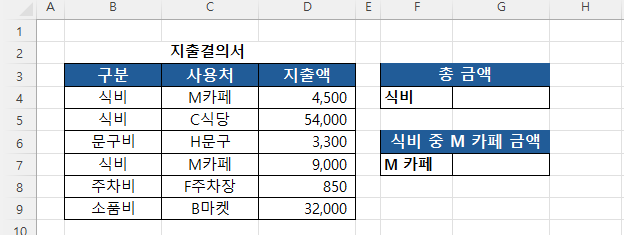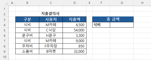 "OO 씨 이번에 저희 부서 지출결의서에서 식비만 합산하면 얼마인가요?"