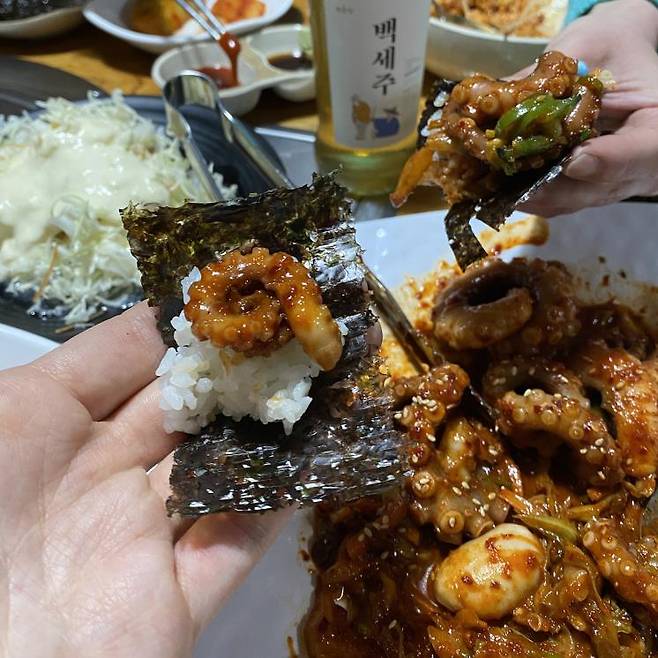 춘천에 위치한 산낙지 맛집 낙지명가. 지금 날씨에 야외 테이블에 앉아 시원한 폭포를 바라보며 즐기기 딱이다. 이곳의 메인 메뉴는 산낚지 덮밥, 소고기 낙지볶음. 산낙지만 취급하는 곳으로 일반 낙지보다 더욱더 꼬들꼬들한 식감을 자랑할 것. 불향을 머금은 매콤한 양념은 맵기를 선택할 수 있으며 반찬으로 나오는 백김치와 해초무침을 곁들여 매운맛을 중화시키며 먹어보자. 또한 여럿이 방문했다면 여름 별미 메뉴 산낙지 냉면까지 꼭 함께 먹어보는 것을 추천한다.