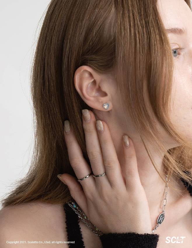 빛에 따라 다양하게 보이는 오로라빛이 매력적이며 데일리로 착용하기 좋은 미니멀한 귀걸이입니다.