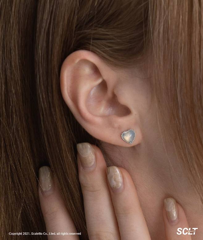 오로라 빛의 하트 귀걸인데요.