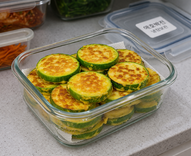 갓 만든 애호박전은 채반에 받쳐 한 김 식혀주세요. 바로 접시에 쌓아두면 열기로 인해 눅눅해질 수 있거든요. 완전히 식힌 후 밀폐용기에 넣어 냉장 보관하면 2-3일은 신선하게 드실 수 있습니다. 남은 재료 활용법도 알아두면 좋습니다. 애호박이 남았다면 나물로 무쳐도 좋고 된장찌개에 넣어도 맛있어요. 계란이 남았다면 다른 채소전을 만들 때 활용하시면 됩니다. 색다른 변형도 시도해보세요. 청양고추나 당근을 얇게 채 썰어 함께 넣으면 더 풍부한 맛과 색감을 낼 수 있어요. 아이들이 있는 가정에서는 치즈를 살짝 올려 구워도 좋아할 거예요. 무엇보다 기름기를 적당히 제거해서 드시면 더욱 건강하게 즐길 수 있습니다.