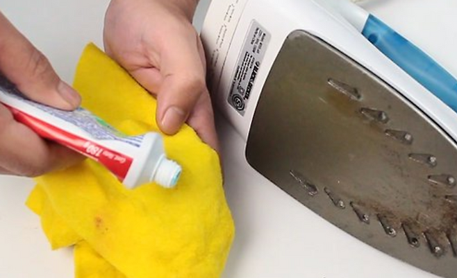 다리미판을 사용하지 않고 담요 등을 이용해서 다림질을 한경우 다리미에 이물질이 눌러붙는 경우가 있습니다. 이럴때 안쓰는 칫솔에 치약을 묻혀 이물질이 묻은 부위를 문질러 주면 효과를 볼 수 있는데요. 치약에 있는 실리카가 연마작용을 하기때문입니다. 칫솔로 제거가되지않는 이물질은 수세미와 치약을 이용해서 살살 문질러주면 대부분 제거가 됩니다.