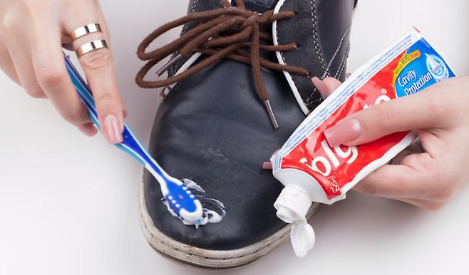 가죽 신발이 더러워졌을때 부드러운 천에 치약을 묻혀 천천히 문질러주면 광택이 살아나면서 새것처럼 보이게됩니다. 또 운동화의 고무부분이 더러워졌다면 치약과 오래된 칫솔을 활용하면 얼룩제거가 쉬워집니다. 단 치약을 너무 많이 묻혀서 닦으면 오히려 신발이 손상될 수 있으니 주의해야 합니다.