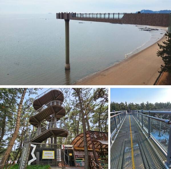 스카이워크 끝에는 기벌포 해양전망대가 있어 아름다운 바다 전망을 감상할 수 있습니다. 바다내음과 은은한 솔향으로 인해 다른 스카이워크와는 다른 힐링을 할 수 있는데요. 시간대를 맞춰 뻘이 아닌 바다를 보시기를 추천드립니다. 스카이워크를 둘러보신 후 700m 거리에 위치하고 있는 국립해양생물자연관이나 마량포구와 함께 동백나무숲을 들려보시는 것은 어떨까요?