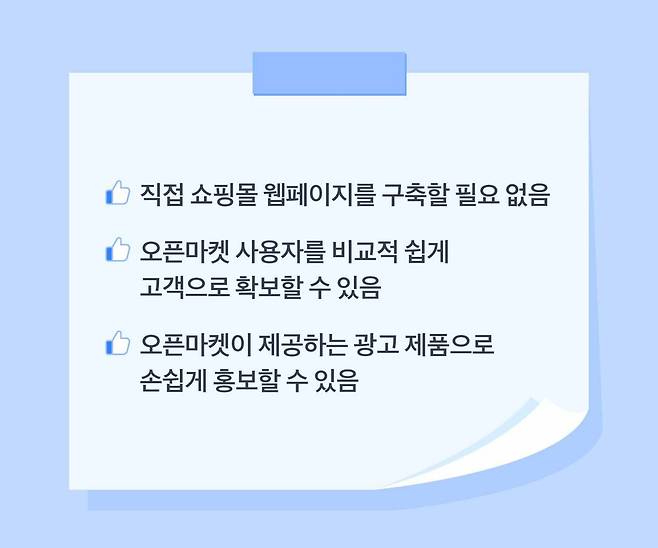 많은 사장님들이 온라인 판매를 시작할 때 ‘오픈마켓’을 고민하는데요. 오픈마켓의 장점은 무엇일까요?