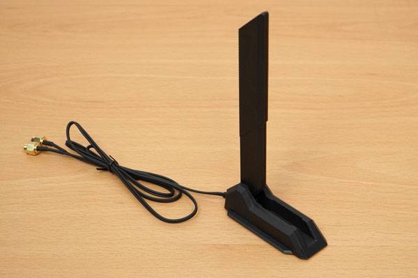 2.5Gbps 유선 이더넷 외에도 온보드 Wi-Fi 6E 및 블루투스 v5.3 무선 연결을 지원하기 위한 무선 안테나가 들어갔다. 안테나에는 전송 속도를 높일 수 있도록 2개의 송신기와 수신기가 내장된 2x2 방식으로 2.4GHz, 5GHz, 그리고 6GHz 대역을 지원한다. 마그네틱 베이스로 PC 상단이나 측면에 손쉽게 안테나를 고정할 수 있다.