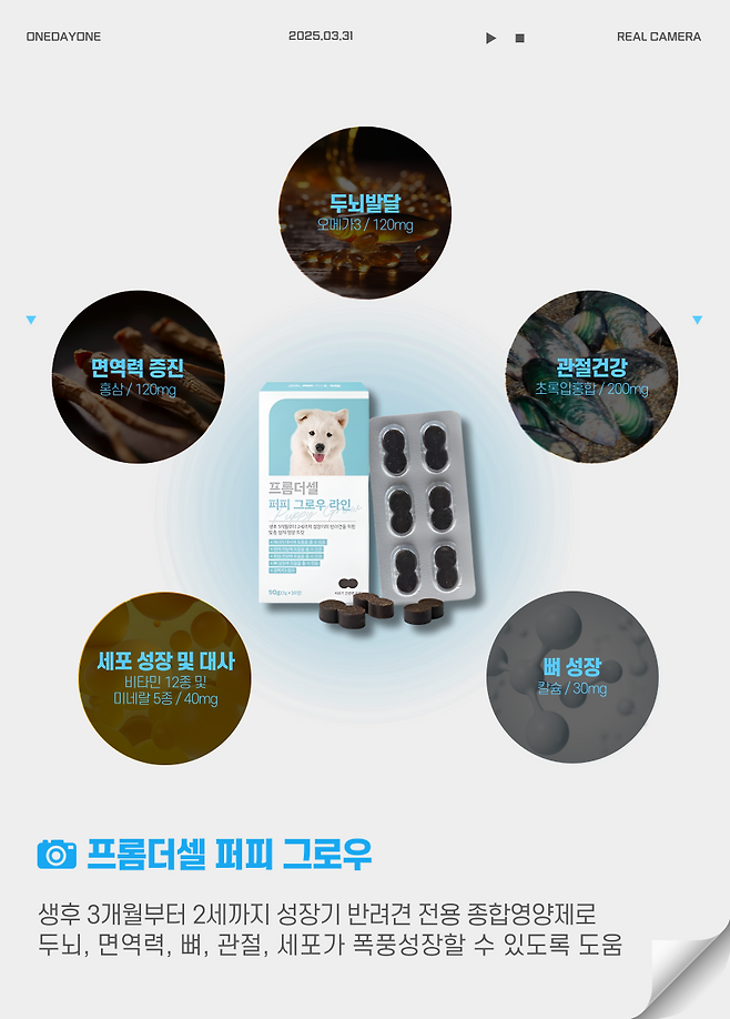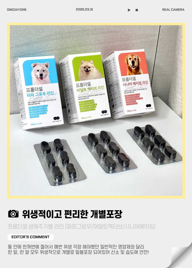 또 개인적으로 에디터의 마음을 뒤흔들었던 디테일은 바로 프롬더셀 강아지 종합영양제의 포장에 있다.