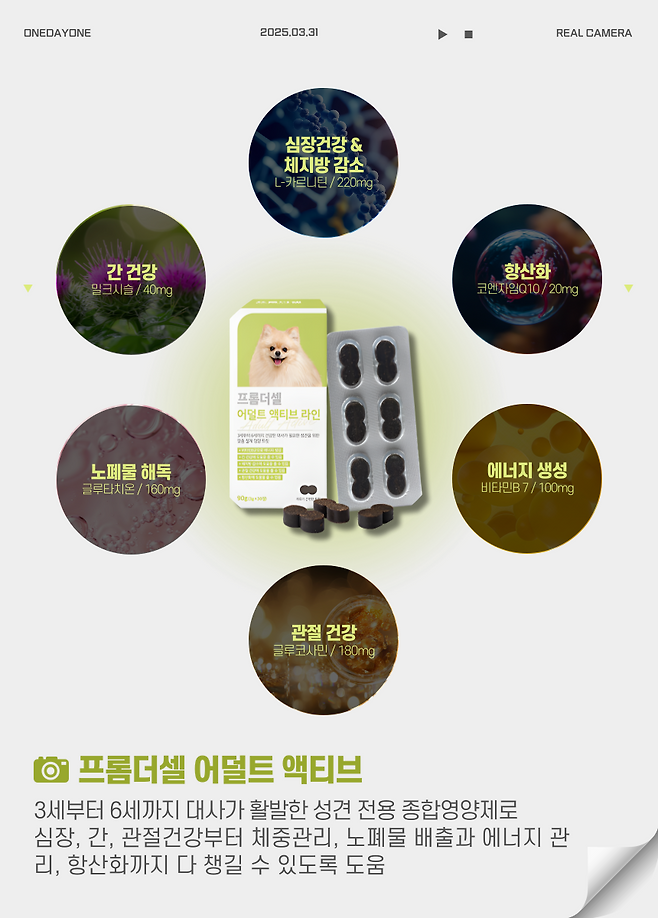 따라서 필요한 성분들 중에서도 반드시 섭취해야하는 것들로만 딱 한 알로 챙겨주는 것이 아이들에게도, 반려인들에게도 가장 좋은데