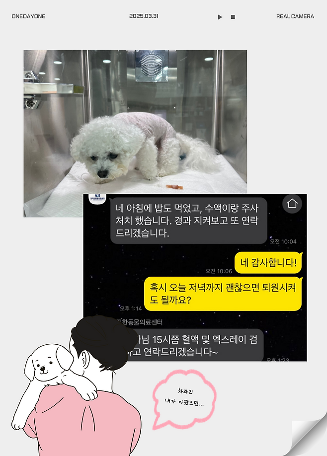 그래서 동물 병원을 밥먹듯 다닐 수 밖에 없고 그럴 때마다 아이들의 '엄마'로써 마음이 너무 아프고 미안할 뿐이다.