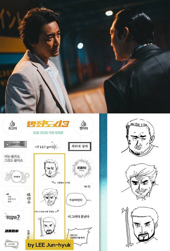 모바일 게임 ‘안녕 Popcorn’ 제작에서도 드러났듯이 이준혁은 그림 실력도 뛰어난 편입니다. 어린 시절부터 만화를 좋아해 그림을 자주 그렸고, 이후 예능 프로그램이나 인터뷰 등을 통해서도 그림 실력을 뽐낸 바 있는데요. <범죄도시3> 무대인사에서는 마석도, 주성철, 리키 등 각 캐릭터의 특징을 섬세하게 묘사한 스티커가 전해지며 관객에게 즐거움을 주었습니다. 이 스티커의 그림 역시 이준혁의 작품이었다고 하죠. <신과 함께> 천만 관객 동원 당시에도 자신의 배역인 박중위를 그려 감사를 전하기도 하였고, <적도의 남자>, <맨몸의 소방관>, <시를 잊은 그대에게> 등 출연작들의 캐릭터를 그리며 그림 실력을 인증한 바 있습니다.