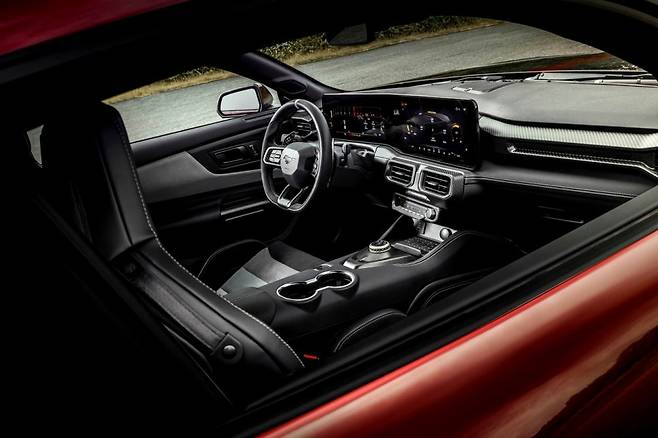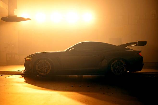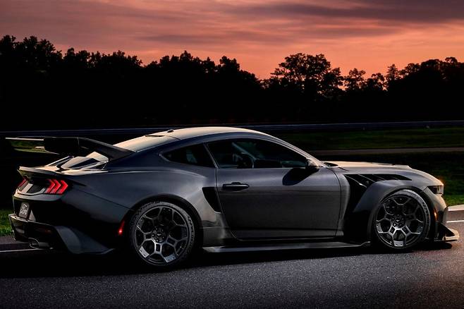 차체는 전장 4,818mm, 전폭 2,083mm, 전고 1,379mm로 기존 머스탱보다 길고 넓으며 낮다. 와이드 바디킷, 공기역학적 설계, 유압식 액티브 리어 스포일러까지 더해져 트랙 주행에 최적화됐다.