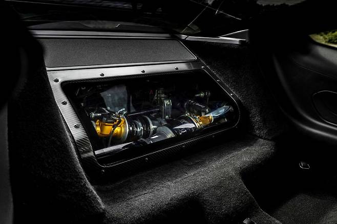 실내는 2인승 구조로, 레카로 버킷 시트와 하이퍼 라임 스티치가 더해진 블랙 인테리어가 스포티한 분위기를 강조한다. 13.2인치 터치 디스플레이와 12.4인치 클러스터가 이어진 디지털 콕핏, 폐기된 F-22 전투기 부품을 활용한 티타늄 인테리어 등 독창적인 요소도 눈길을 끈다.