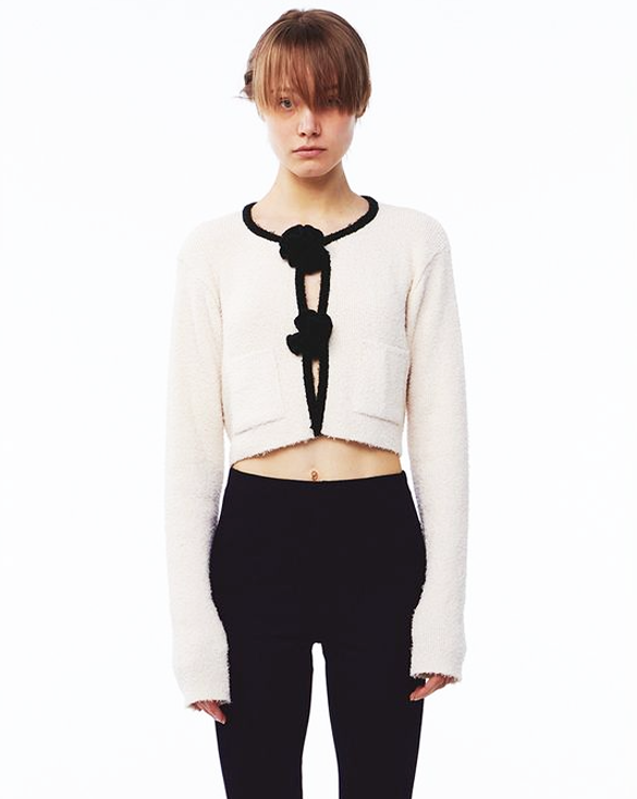 해당 가디건은 레귤러 핏과 크롭 기장이 특징이며, 사이즈는 S와 M 두 가지로 출시되었다.