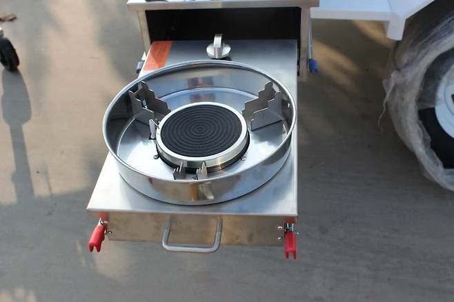 전면에는 잠금식 리드가 있는 노즈 콘 형태의 수납함이 장착돼 있고, 측면에는 여러 개의 잠금식 락커도 보인다. 놀랍게도 청두는 가스식 조리대를 슬라이드식으로 배치해 싱크대, 수전, 조리용 버너, 조리대 공간 등을 갖춘 주방을 구현했다.