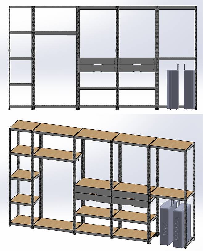 사용자가 높 낮이 및 선반의 갯수등을 정할 수가 있습니다.
