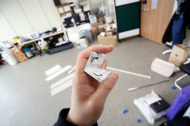 앵글 부분의 홈에 끼워주기만 하면 되겠습니다.