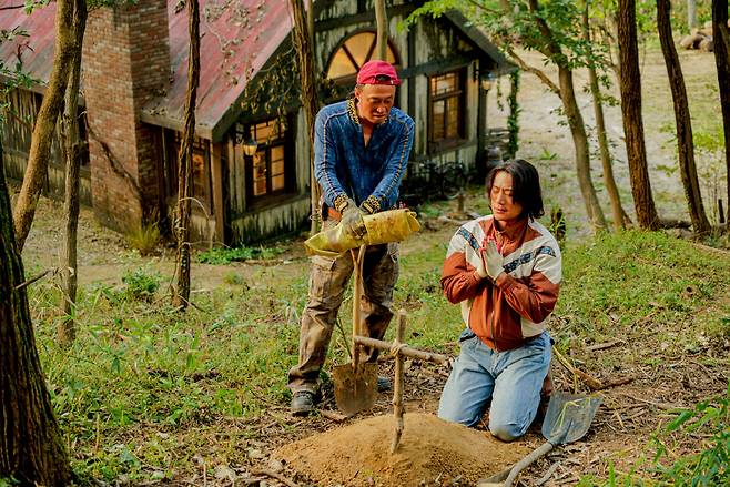 엘리 크레이그 감독의 <터커 &데일 Vs 이블>을 리메이크했다. 원작의 고어, 슬래셔 부분을 거두어 두고 한국 정서에 맞게 각색한 남동협 감독의 타율 좋은 개그가 웃음을 저격한다. <파묘>에서 이미 입증한 바 있는 복합장르 트렌드 중 코미디와 오컬트의 조합을 택한 영화는 자칫하면 유치해질 수 있는 두 장르의 밸런스를 찾았다. 어디서 많이 본 것 같은 기분과 신선함이 교차되는 나쁘지 않은 조합니다. 신정원 감독의 <시실리 2Km>, <죽지 않는 인간들의 밤>의 저세상 코미디, 1980-90년대 할리우드 영화 느낌이 물씬 풍긴다.