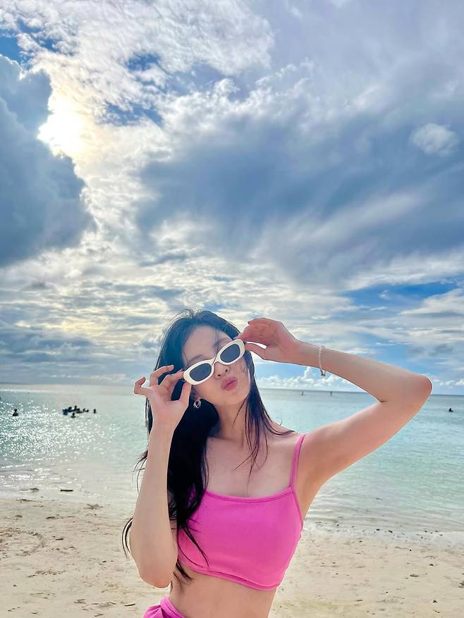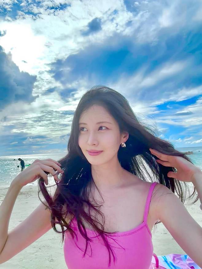 최근 공개된 사진 속 서현은 쨍한 '핫핑크' 색상의 비치웨어를 입고 청순한 얼굴과는 완전히 상반되는 글래머러스한 몸매를 뽐냈다.
