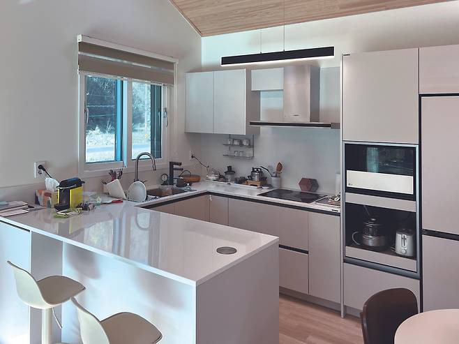 40년 전 집을 지었을 때 2년이 지나자 문짝이 안 맞고, 물이 새고, 결로가 생기고, 철거 없이 개보수를 계속해야 했던 경험이 있어 오래 갈 수 있는 집을 짓고 싶었던 소망을 충족시켜 줄 수 있을 것으로 여겼다고 한다. 꼼꼼한 엔지니어 출신 건축주가 세웠을 갖가지 세부적인 기준을 기대했던 기자가 무색해지는 순간이었다. 한편으로는 “이런 대표가 있는 업체라면 적어도 70% 이상은 신뢰할 수 있겠다는 확신이 들었다”는 얘기를 듣고 집짓기 과정에서 가장 중요한 것은 신뢰와 열린 마음이라는 것을 새삼 실감했다.