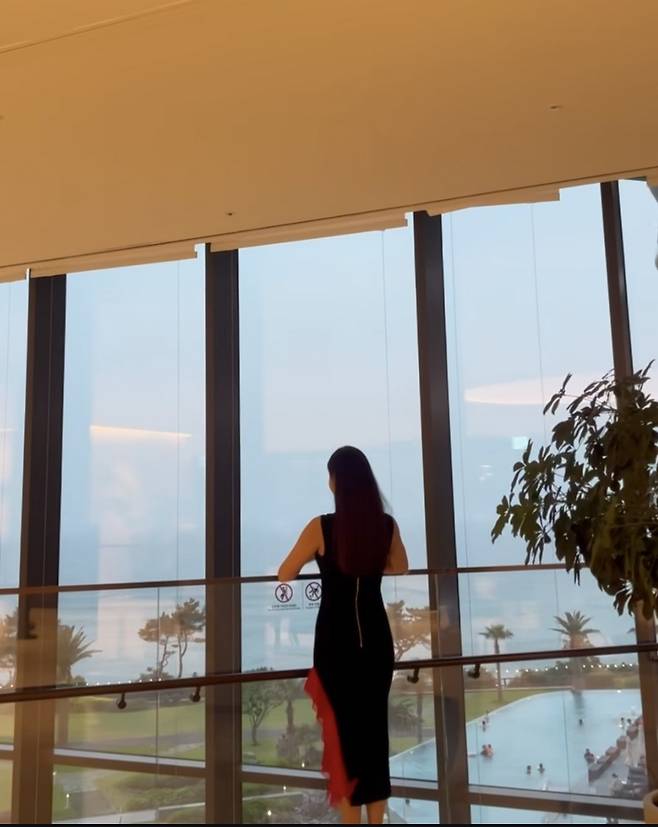 조정민은 넥라인 키홀 디테일이 들어간 민소매 블랙 드레스를 착용해 단정하면서도 여성스러운 실루엣을 강조했습니다.