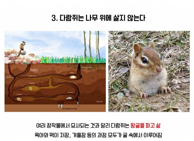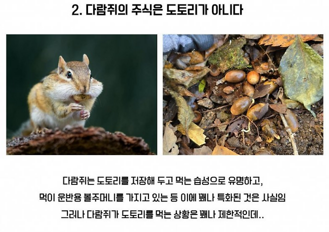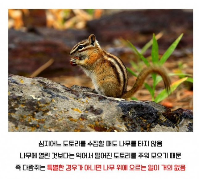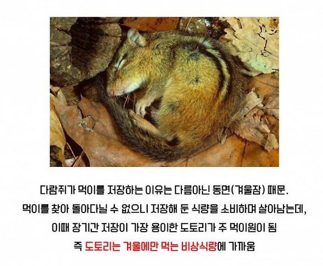겨울잠은 안 자지만, 가을에 도토리를 여러 장소에 묻고 기억해둠
