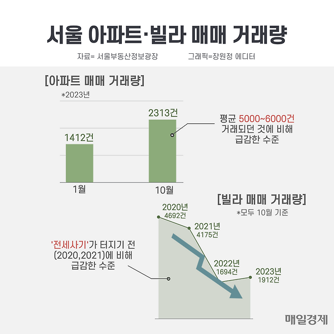 같은 달 서울 빌라 거래량은 1912건으로 집계됐습니다.
