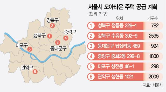 서울 성북구 정릉동과 강북구 수유동, 동대문구 답십리동 등 6개 지역에서 8500가구에 달하는 모아주택 공급이 이뤄진다.
