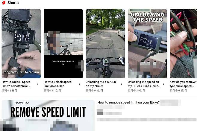심지어 유튜브 등지에서 전기자전거의 제한 속도 해제 방법을 설명하는 동영상이 돌아다니고 있다. 영상은 전기자전거의 속도 감지 부품을 교체하거나 단말기를 관리자 모드에서 설정해 제한 속도를 상향하는 방법을 알려주고 있었다.